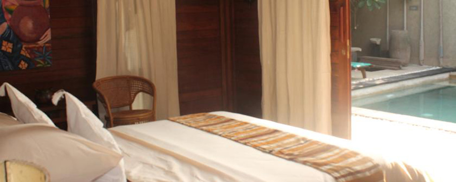 Gili Exotic Villa is built and designed like no other. The first thing and probably the most apparent and ongoing theme throughout the villas is the use and selection of beautiful natural woods. The bulk of the villas were constructed from aged timber originally used in Phinisi Boats. The two villas consist of five bedrooms each – four double bedrooms and one twin bedroom with its own bathroom and toilet. There is a large divider door than splits the two villas. However, if there is a large booking the divider can be opened to transform the two separate villas into one very large one with a total of ten bedrooms. Welcome guests will enjoy the mood created by the rooms which are furnished using yet more hand picked quality timbers, yet there is an underlying modern hint since all the important facilities consist of only the best mod cons. The entrance door is a grad edifice in its own right, and the 12 meter long front door that is built from a 200 year old special Kudus wood from central Java, is an inspiring portal that creates a dynamic feel to staying at Gili Exotic Villa. CLICK HERE TO HAVE BEST OFFER AND INSTANT CONFIRMATION.